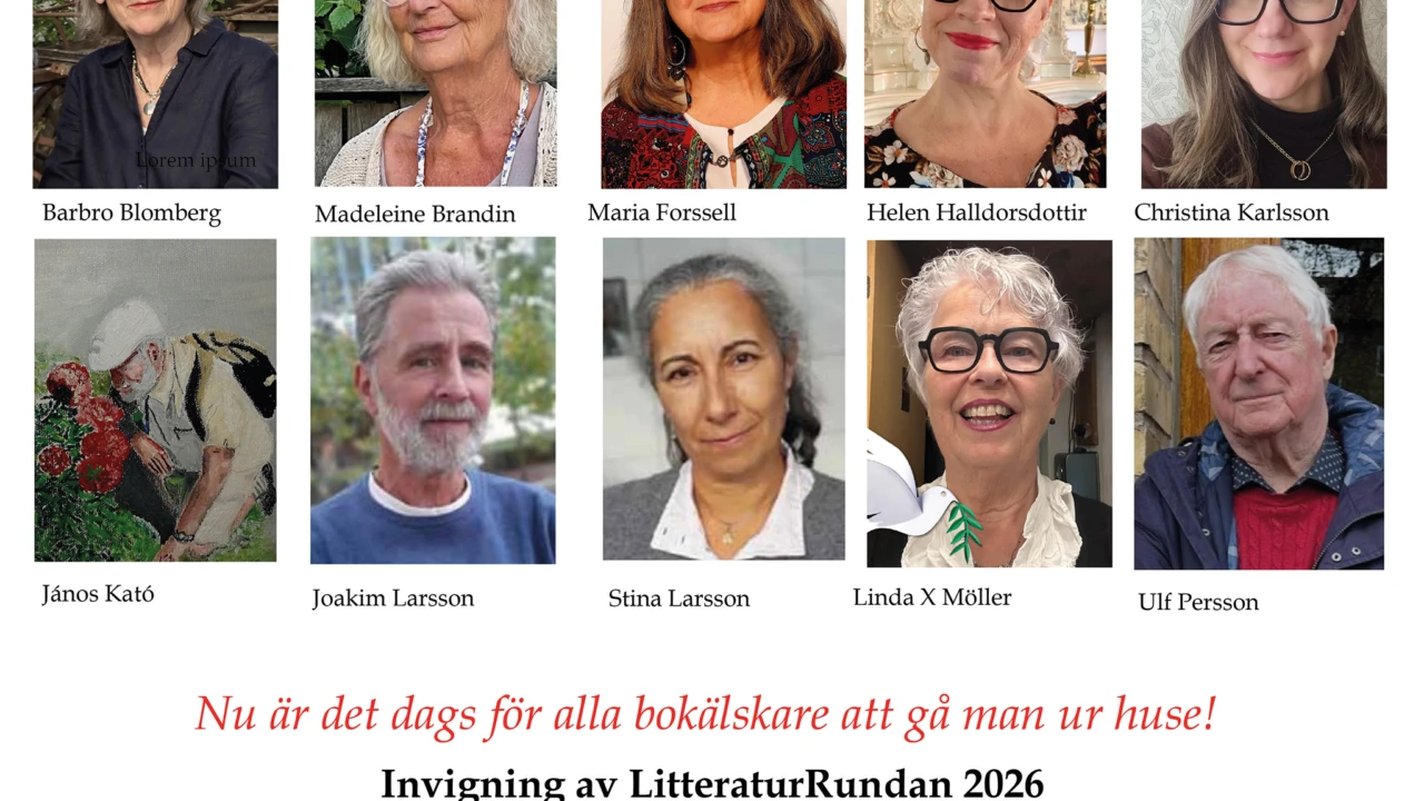 Invigning av LitteraturRundan 2026 i Trelleborg. Nu är det dags för alla bokälskare att gå man ur huse! Ta del av den lokala litteraturen. Här kommer att finnas möjlighet att mingla med tio författare, lyssna på uppläsningar och botanisera bland våra böcker. Här finns bland annat: poesi, historiska romaner, skönlitteratur och barnböcker.