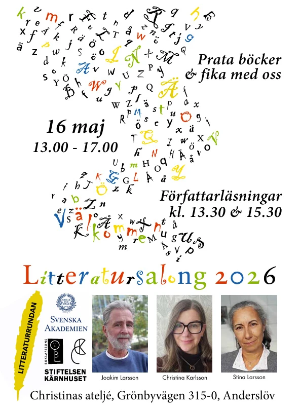 Författaruppläsningar, bordbord och möjlighet att prata böcker och fika med författarna. Poesi, historiska 1600-tals romaner och sagor. Författare: Christina Karlsson,…
