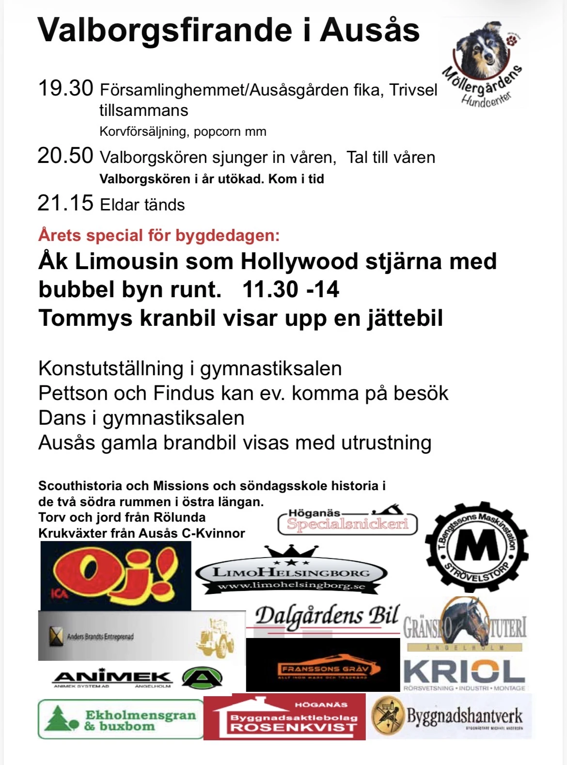 Valborg för hela familjen vid Ausåsgården. Fika, korv, popcorn och sockervadd tillsammans med vårsånger av en kör.