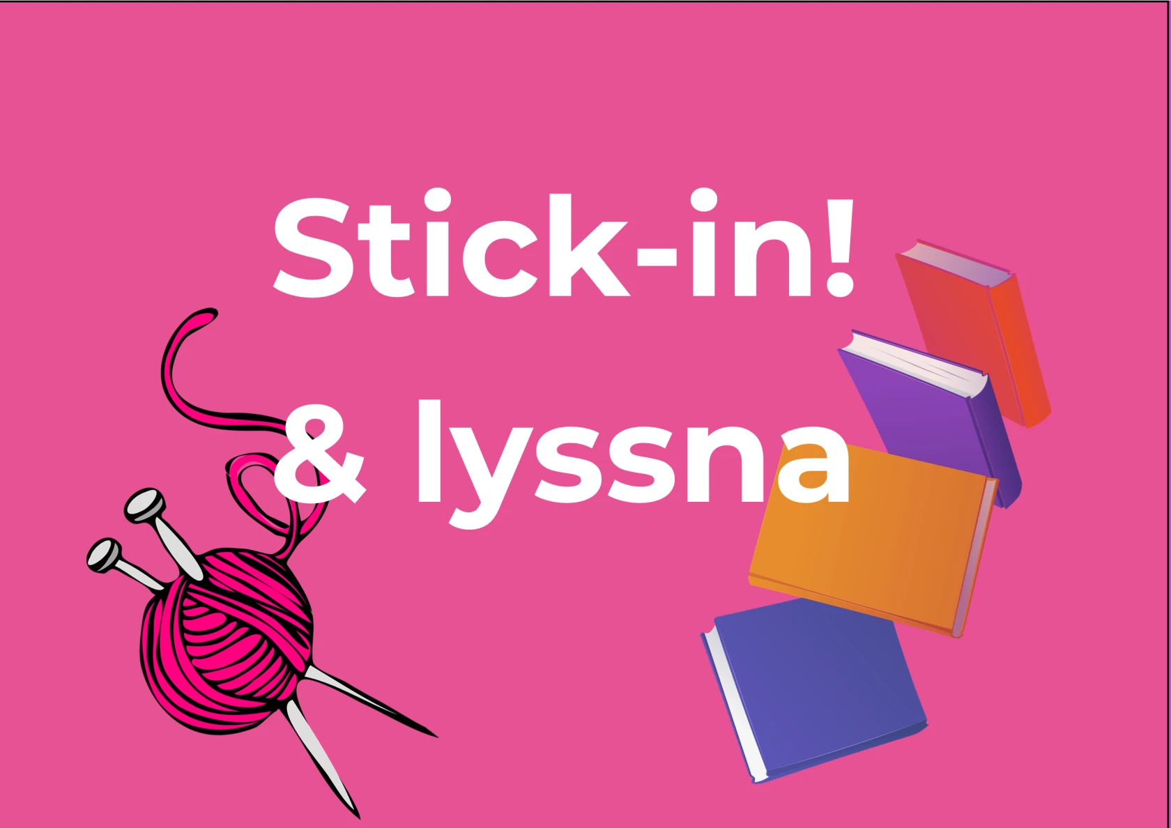 Stick-in! & lyssna. Ett annorlunda stick-café där vi pratar om böcker med koppling till hantverk. Stick-in! & lyssna är för…