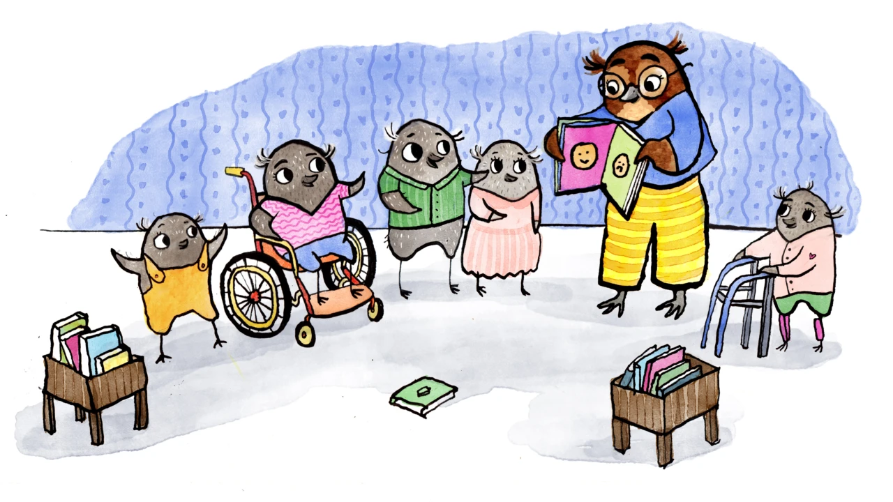 Vi läser saga med hjälp av TAKK och sjunger några sånger.